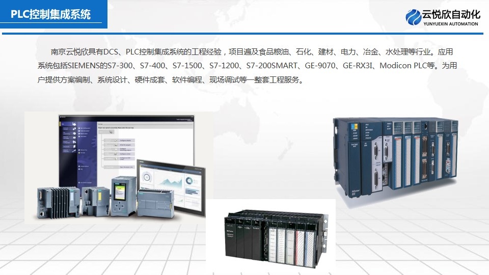 南京云悅欣自動化工程有限公司有從事DCS、PLC控制系統(tǒng)集成的工程經(jīng)驗,項目可遍及石化。建材。電力、冶金、水處理等行業(yè)。應用的系統(tǒng)包括ABB的Frelance2000 、SIMENS-S7-300、400、GE-9070、Modicon PLC等。可為用戶提供方案編制、系統(tǒng)設計、硬件成套、軟件編程、現(xiàn)場調(diào)試等一整套工程服務。